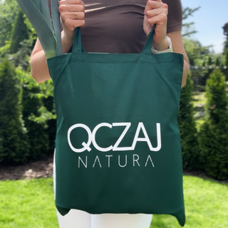Torba shoper z napisem UKOCHOJ SIE! i logo QCZAJnatura zielona/jasnozielona